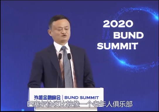 在2020年10月24日的外滩金融峰会上,蚂蚁集团实际控制人马云发表了演讲,公开批评当时的金融监管体系过于保守,称巴塞尔协议像“老年人俱乐部”,并提出“中国金融没有系统”等观点。当时舆论普遍认为:马总桶该不是疯了吧。