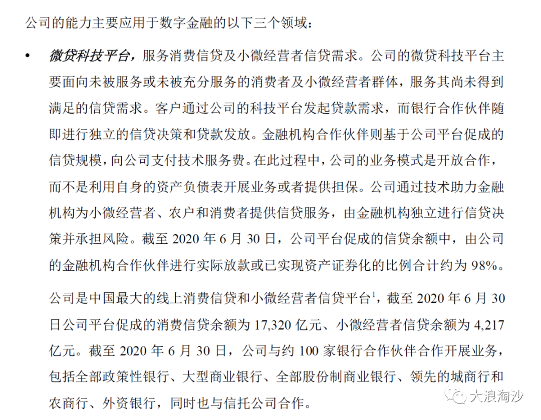 首先马云虽然总是强调蚂蚁金服是科技创新公司,然而招股说明书不会说谎,核心还是靠放贷赚钱——