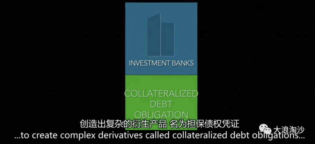 再然后,投行收购这些债权,发布衍生品CDO,把它包装成低风险投资品出售给消费者——CDO越多,投行赚的手续费就越多,同时不用承担债务违约的风险。