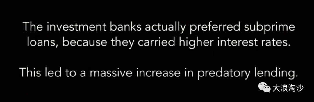 其次,银行可放贷公司(房地美、房利美)不加考量的放出贷款,而且他们更加愿意放出次级贷款——贷款人信用较低的贷款——因为利率更高。